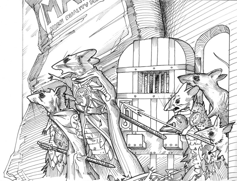 From inside I head BJ bellow commands. Archers from the roof began pelting the enemy with arrows and stones. Soldiers blasted out the mouse entrance while the rats ran back inside to get the door open.
