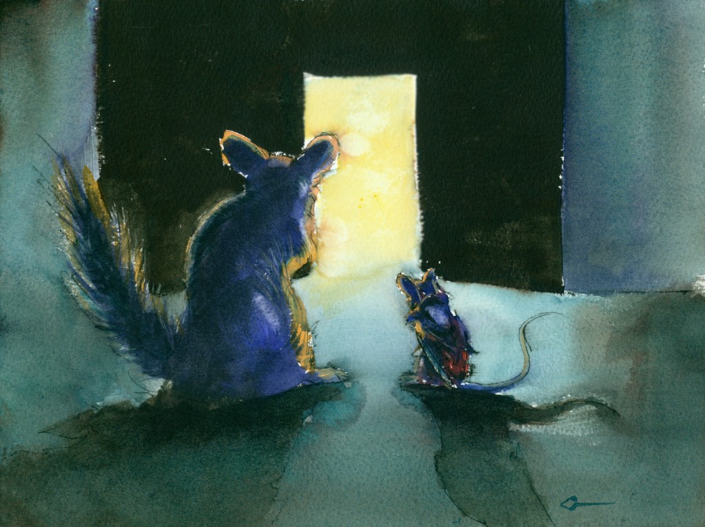 I stopped in front of him. It looked like he'd been living in my nest, which explained why everything was exactly like I had left it. He had defended this place with his own hide, sure I would someday return. Short of my master, no mouse had ever had more faith in me.