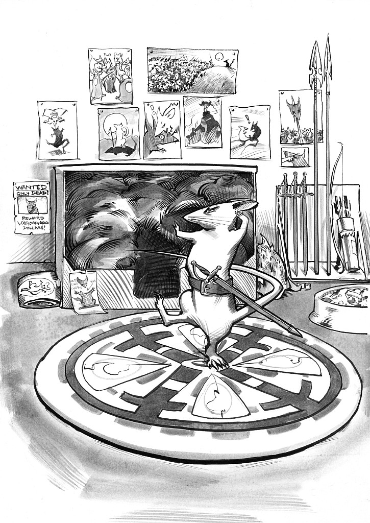 We all knew we had to do something, but we were barely managing to stay alive. We were losing this fight. Good was losing. It wasn't like the stories. Not at all. It wasn't fair. I spent many a minute gazing upward at Bigfat, scowling and showing him my teeth. Boy, when I got up there, I was gonna bite his ear so hard!