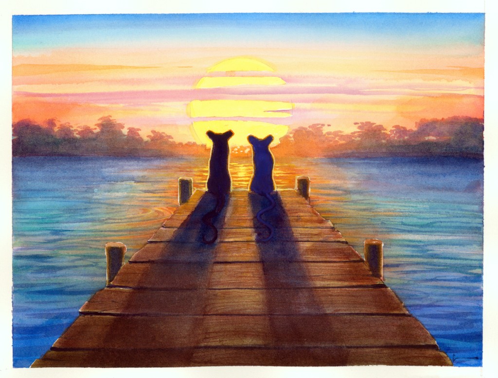 We were on my dock. The magical dock from my meditation. The perfect place of utter, complete peace I had only ever been able to reach once. The water was silvery glass. It ran past us with fluid beauty. The setting sun tinted it gold.