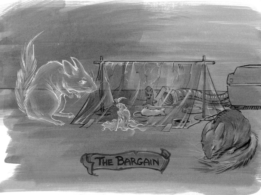 "Not...going to, ...Squib..." He managed. His face was covered in dried blood from his coughing, and I cleaned it off for him. My master. The mighty hero...now reduced to this by our tribulations. I felt burning rage in my chest that I could not aim at anything. Certainly not fate. Not the Mousegod, as much as I wanted to. I always aimed it at the black mouse, but it never struck the target. That coward would not face us.