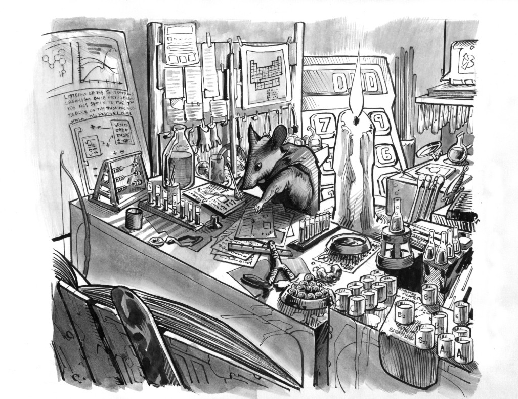I ran back to my lab and house, ignoring transparent spirits in my way, who were all crowding around my master's tent as if they were still alive. When I got to my place under the desk, I saw how my abode had transformed. My house was completely concealed by study books and lab equipment...everything from tiny vials to bowls and stacks of notes. Liquids and powders. I even had the power to make fire with a candle the human trusted me with. My mind went back immediately to the lab I had been trapped in. It even smelled similar.